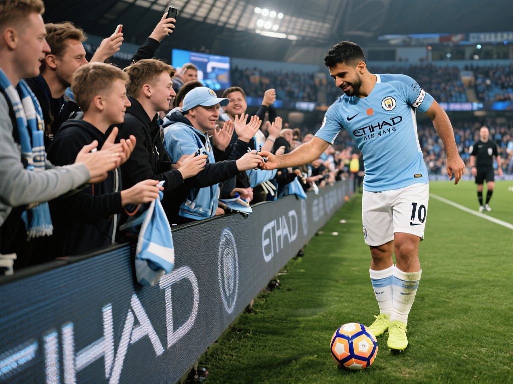 阿圭罗老将赛后暖心互动球迷签名合影